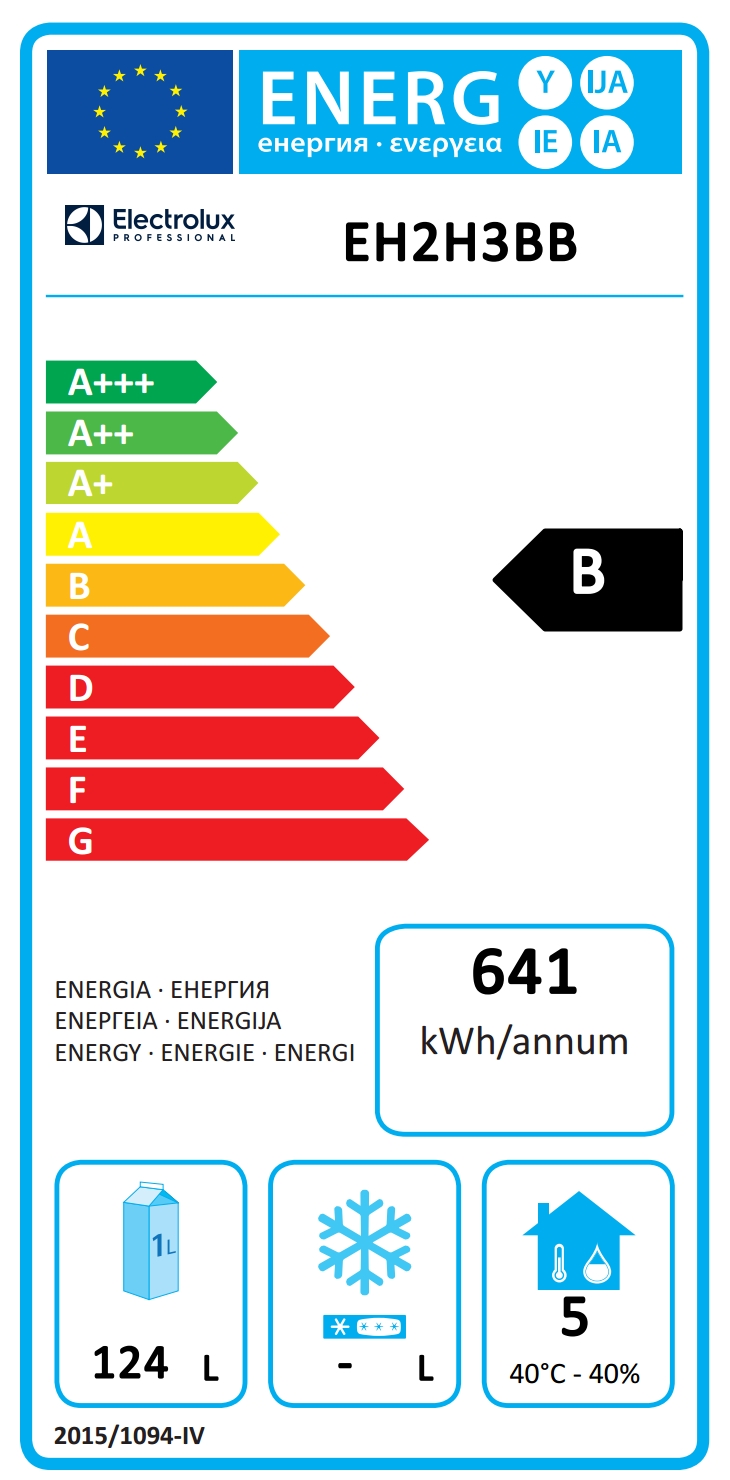 • Classe energetica (in riferimento al Regolamento UE 2015/1094): B